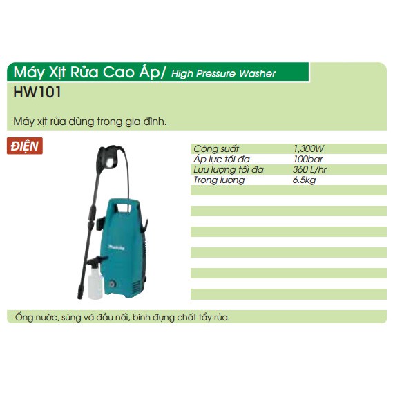 MÁY XỊT RỬA ÁP LỰC CAO HW101 MAKITA free ship